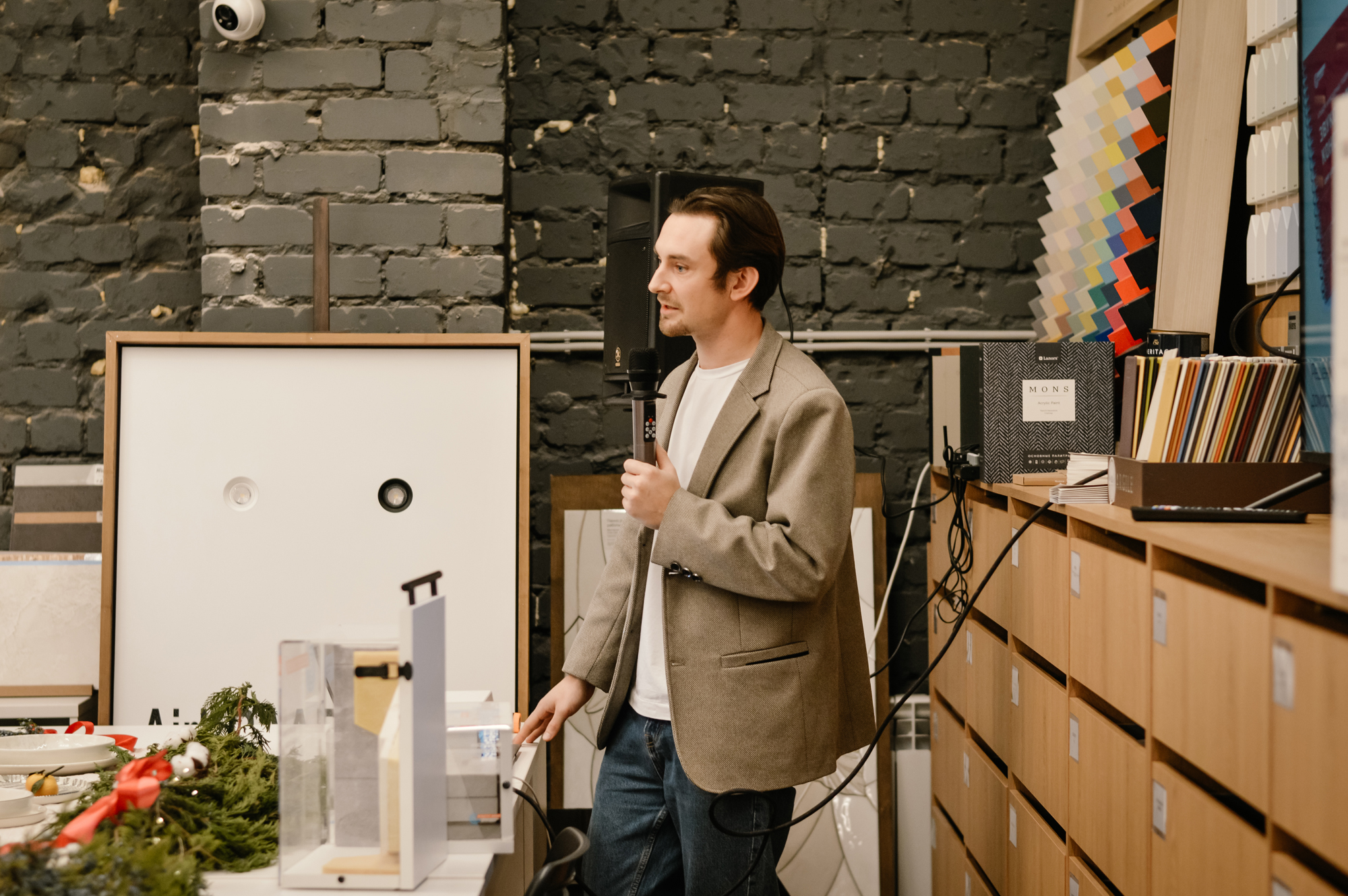 Программа включала выступления приглашённых спикеров, фуршет и розыгрыш призов, одним из которых стал подарок от бренда современной электротехники Donel. На мероприятии присутствовали как дизайнеры, так и торговые партнёры. Специально для гостей «Галерея Электрики и Света» представила демонстрационные образцы самых актуальных новинок осеннего сезона 2025 года. Особый интерес вызвали электроустановочные изделия Donel, в частности, серия N96 с тумблерными выключателями в ретро-стиле.