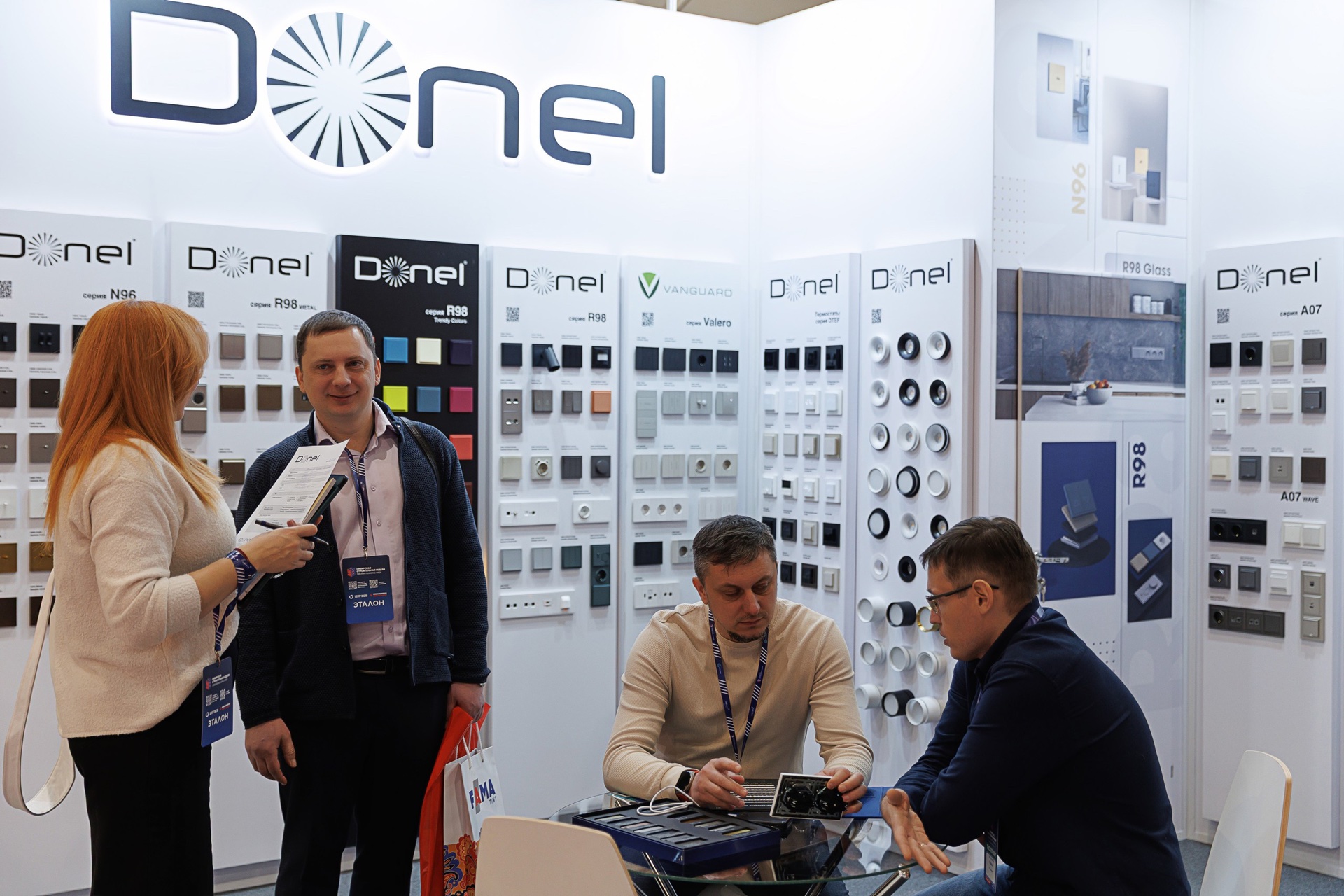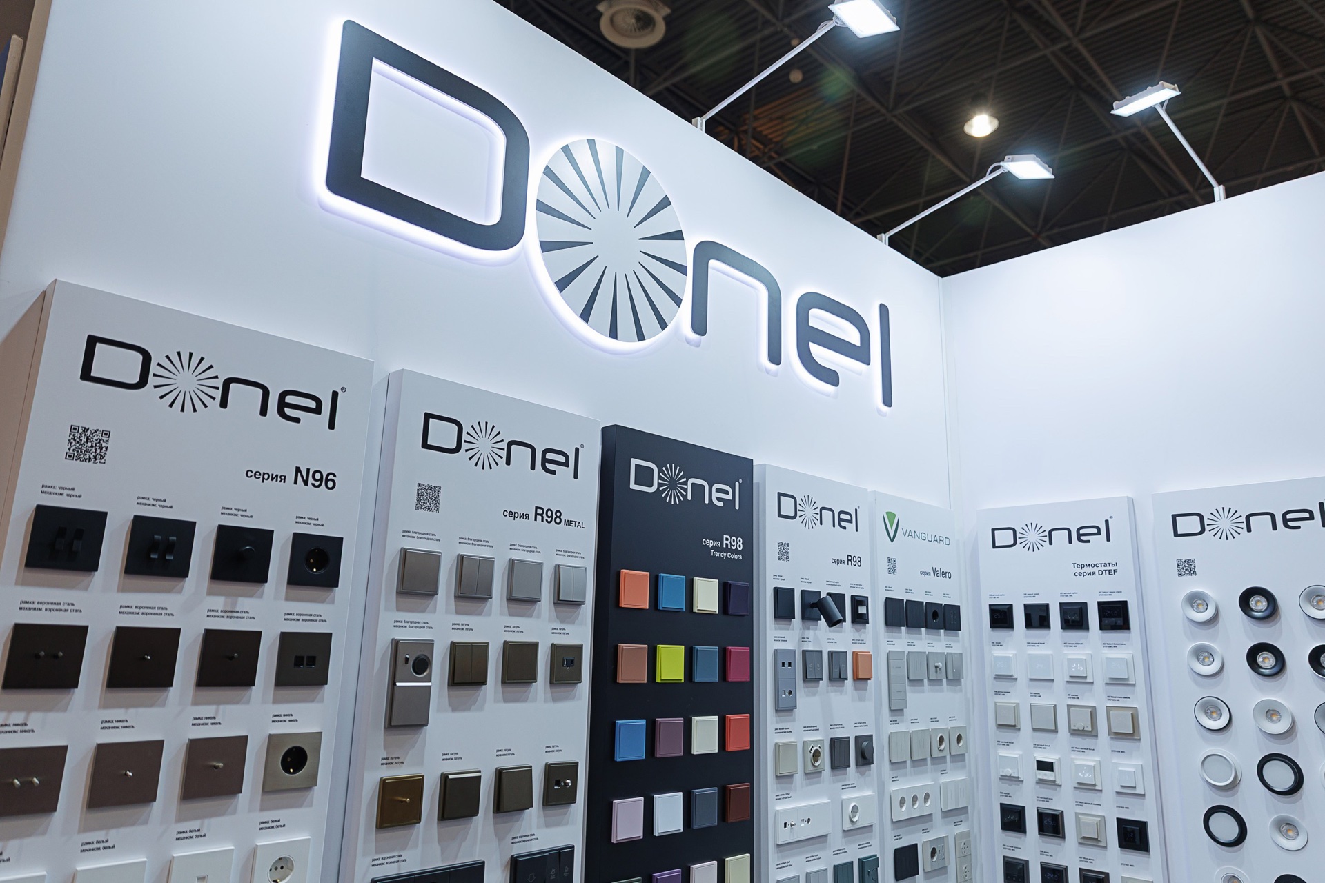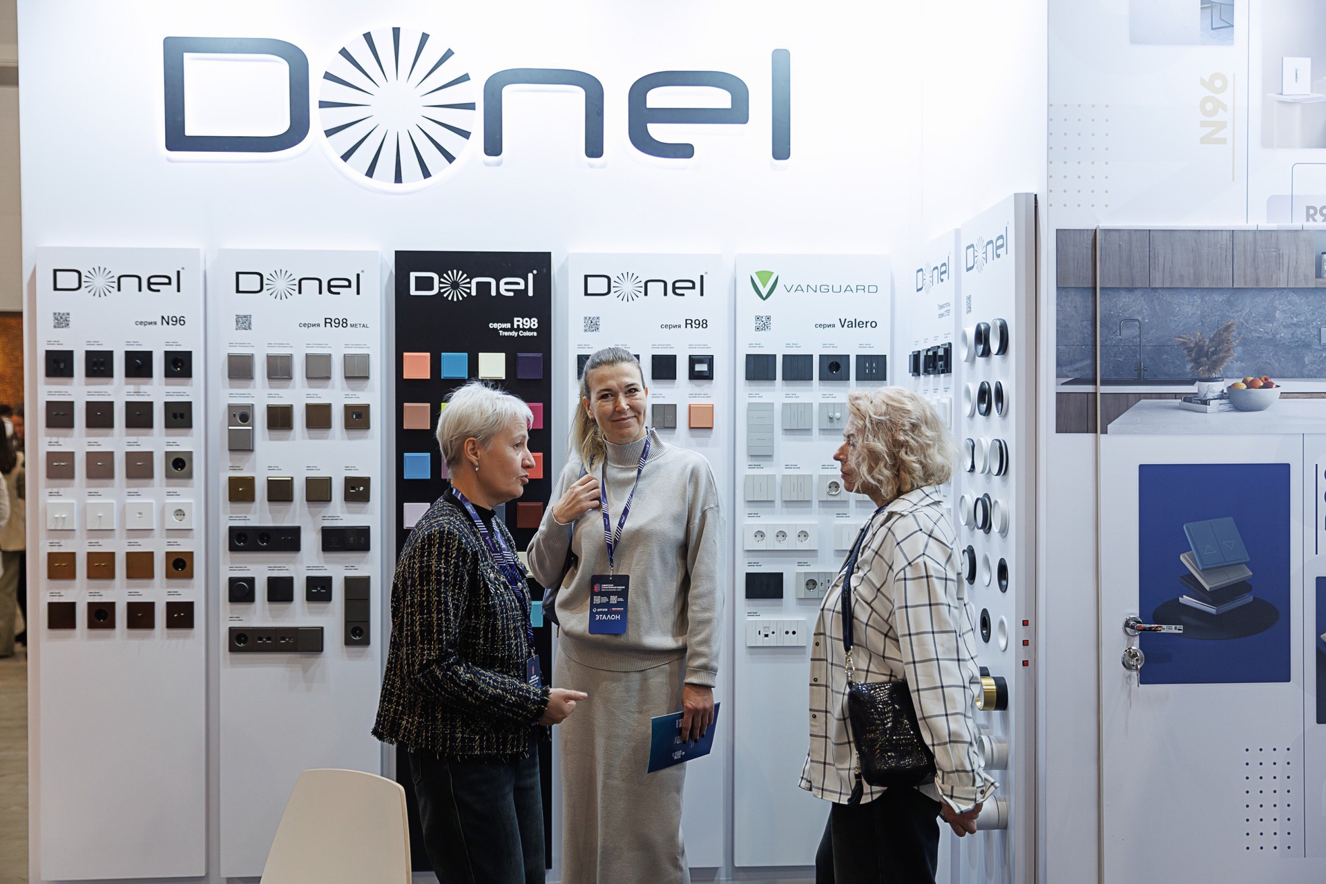 На протяжении 4-х выставочных дней представители Галереи Электрики и Света отвечали на вопросы посетителей стенда и представляли наиболее интересные новинки 2026 года: оборудование для организации рабочих мест, решения для автоматизации зданий на базе стандарта KNX, тумблерные выключатели для культовой серии R98 Metal, розетки и выключатели Vanguard Valero, а также другие серии электроустановочных изделий: N96, R98 Trendy Colors, A07 и S08. Также на стенде были представлены светильники Donel.