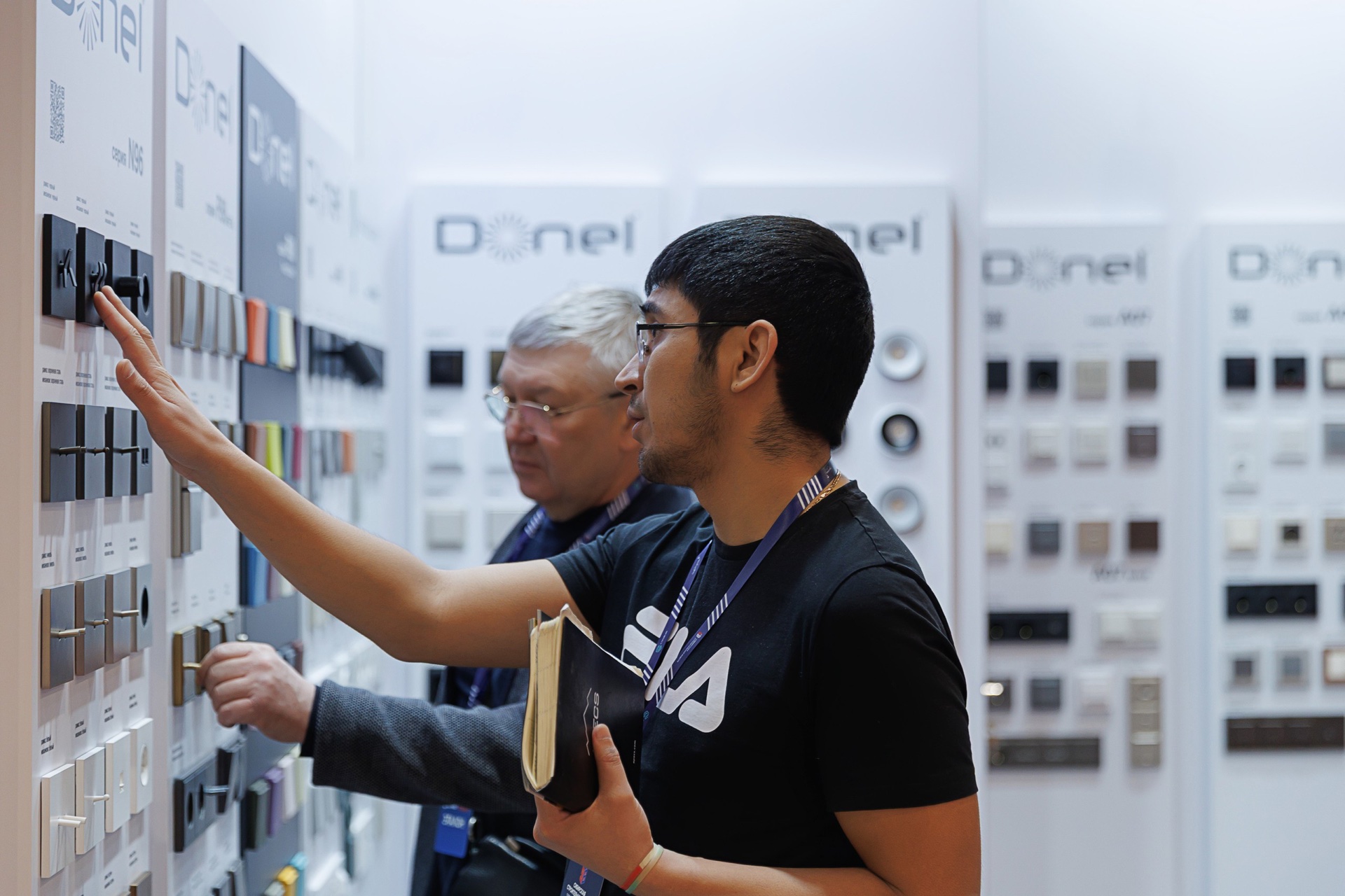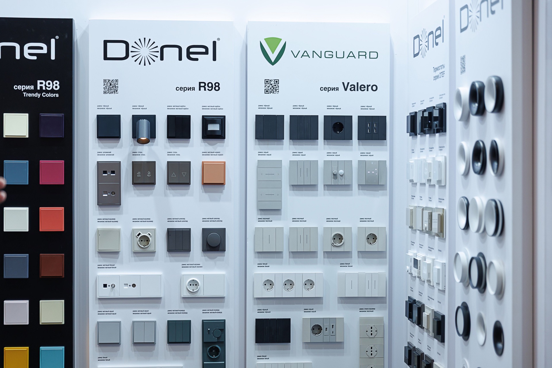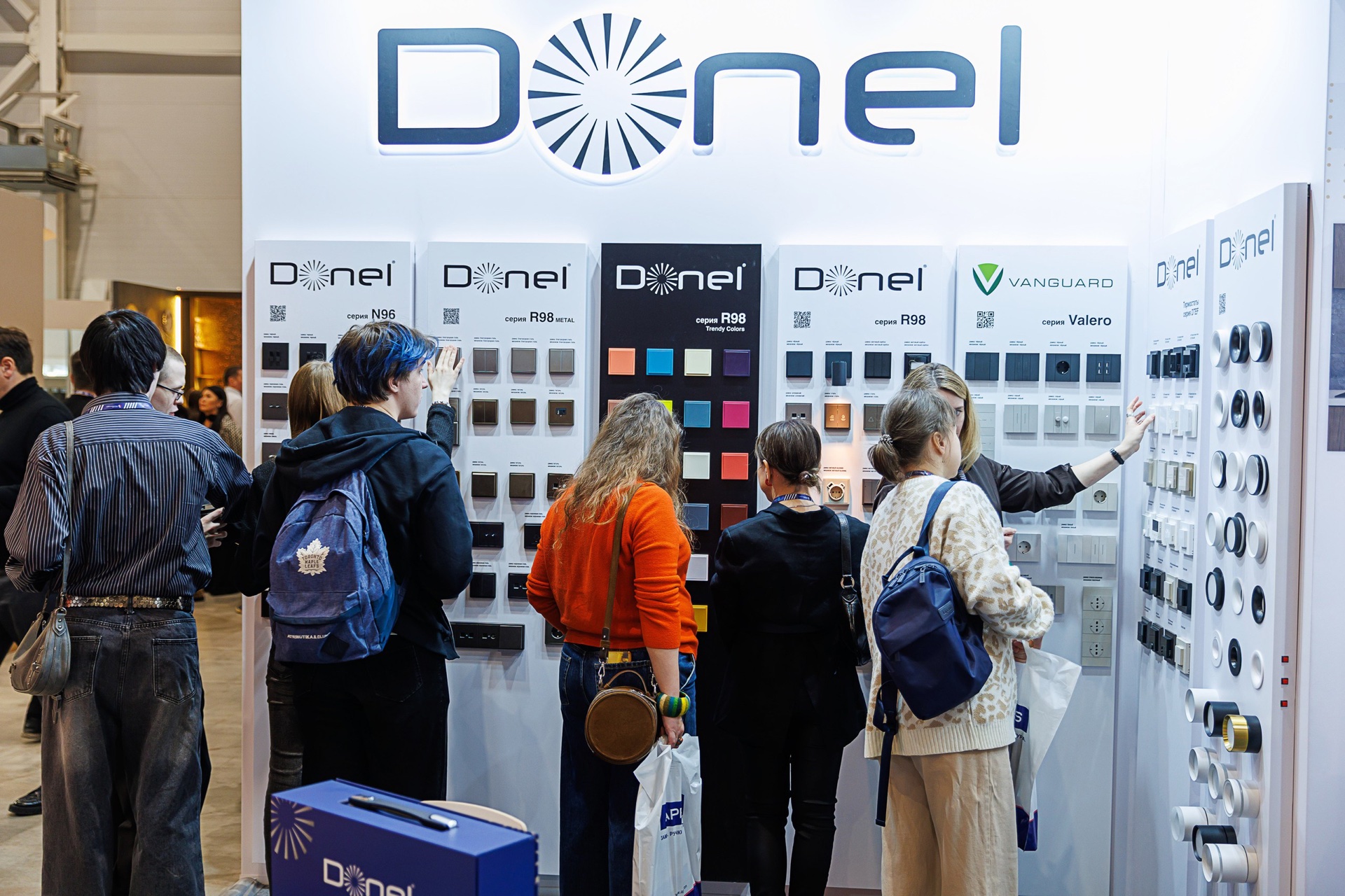 На протяжении 4-х выставочных дней представители Галереи Электрики и Света отвечали на вопросы посетителей стенда и представляли наиболее интересные новинки 2026 года: оборудование для организации рабочих мест, решения для автоматизации зданий на базе стандарта KNX, тумблерные выключатели для культовой серии R98 Metal, розетки и выключатели Vanguard Valero, а также другие серии электроустановочных изделий: N96, R98 Trendy Colors, A07 и S08. Также на стенде были представлены светильники Donel.