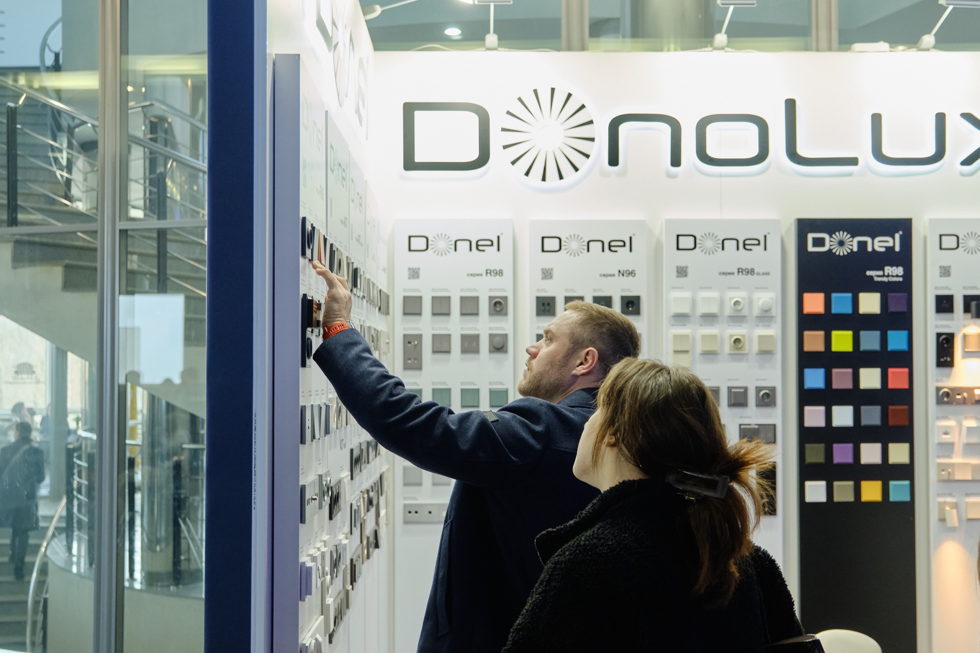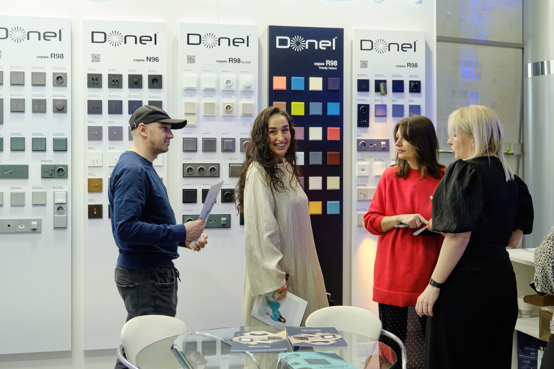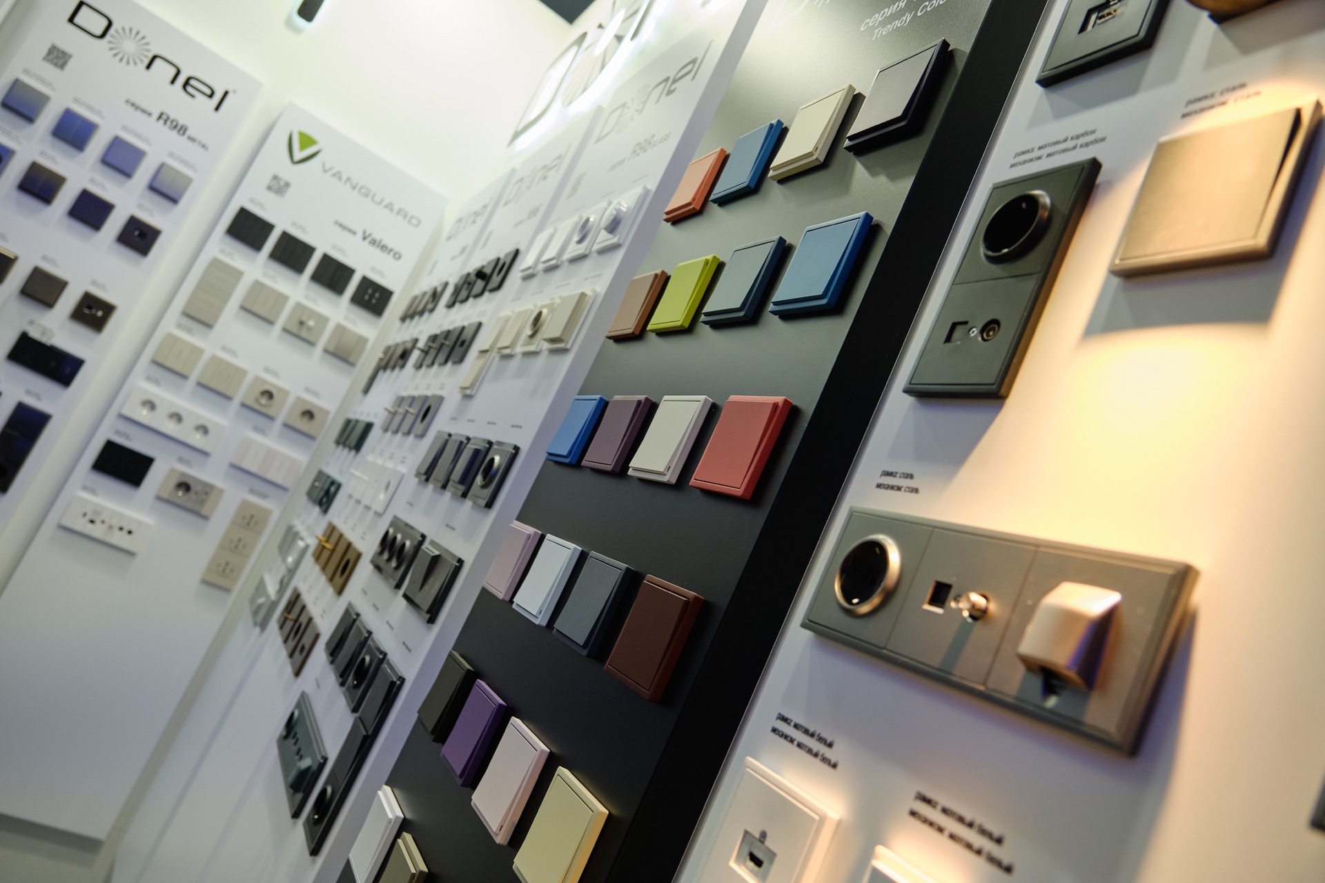 На стенде Donel были представлены новинки: тумблерные выключатели R98 Metal, серия А07 в круглом исполнении, новые цвета и механизмы для серий А07 и S08. Центром притяжения на стенде стала панель с образцами серии Trendy Colors. Серия Trendy Colors – это 24 трендовых оттенка, вдохновленные последними мировыми тенденциями — от глубокой классики до смелой прогрессивности. Все оттенки превосходно сочетаются между собой, это уникальное средство для комплексного оформления интерьера. Также были представлены решения для автоматизации зданий на базе стандарта KNX, которые позволяют оптимизировать ресурсы и повысить уровень комфорта.