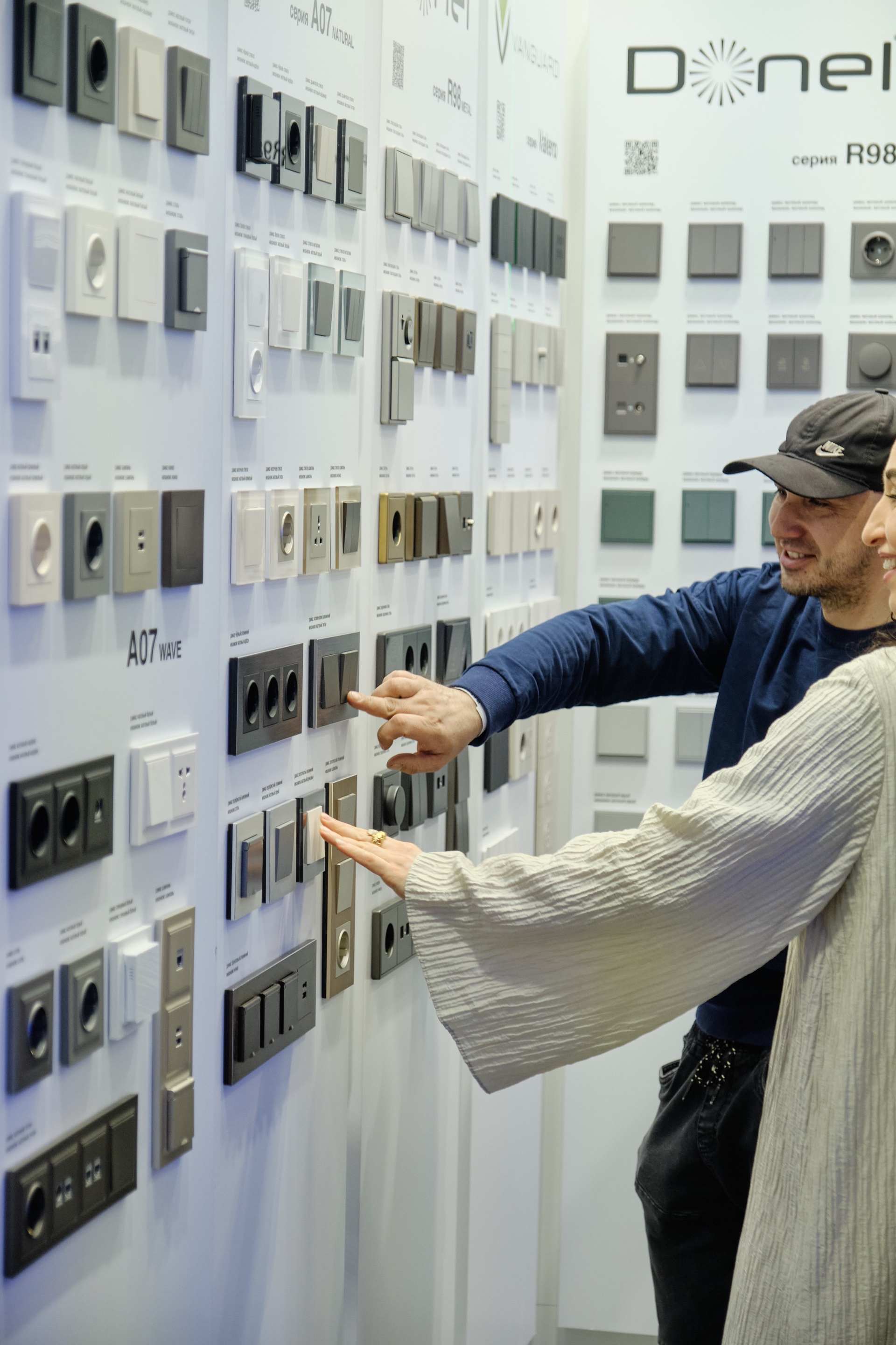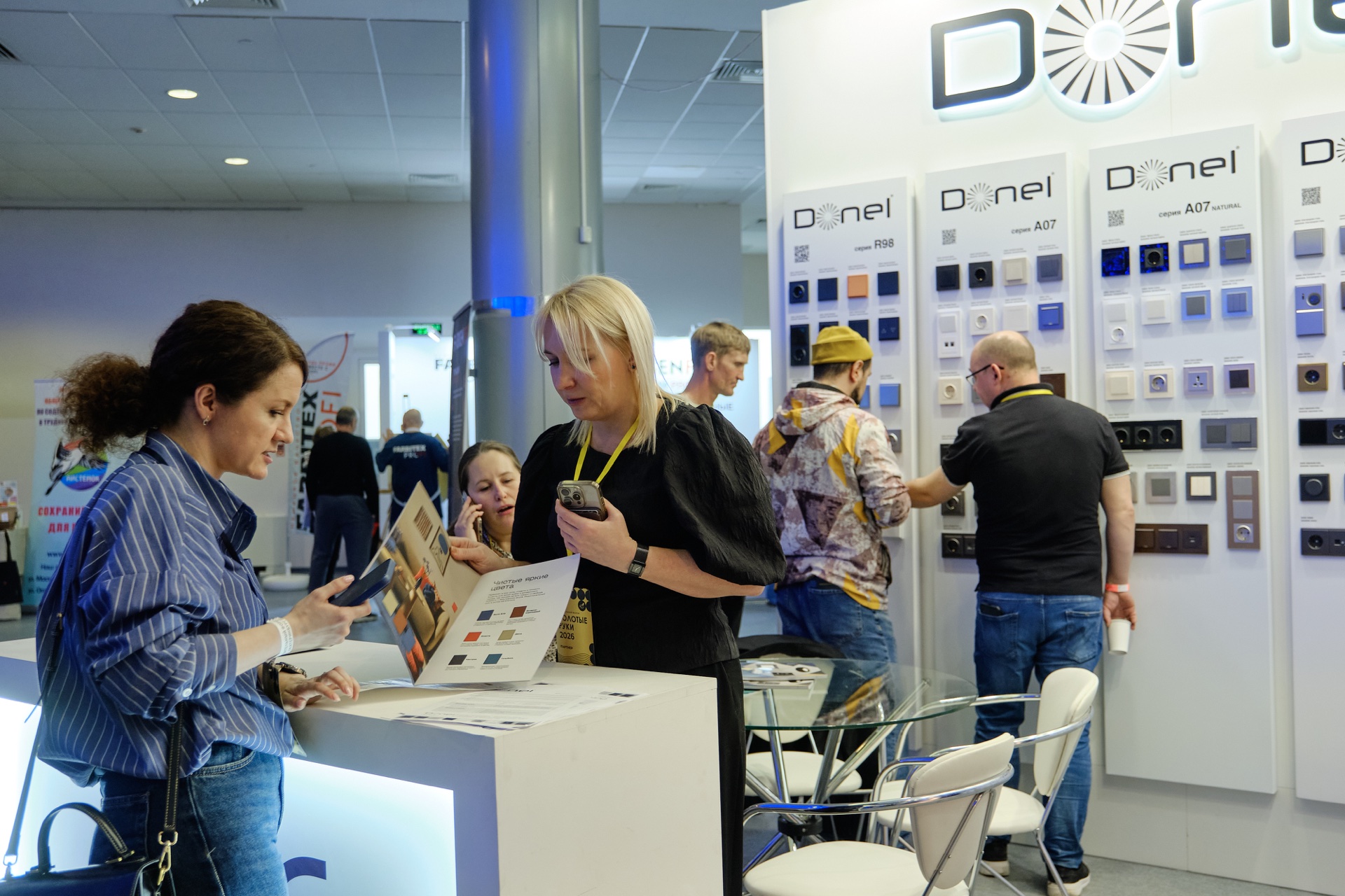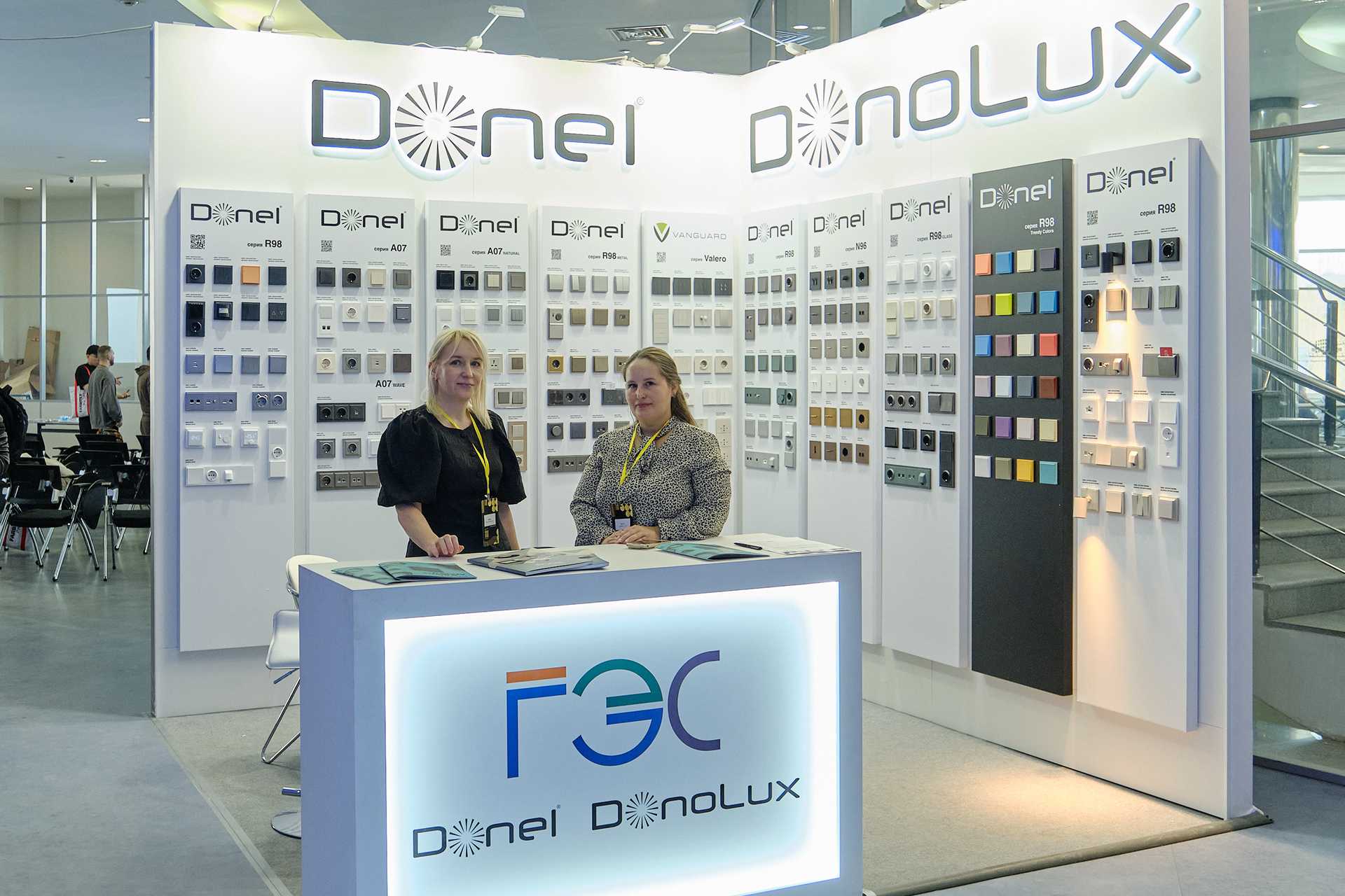 На стенде Donel были представлены новинки: тумблерные выключатели R98 Metal, серия А07 в круглом исполнении, новые цвета и механизмы для серий А07 и S08. Центром притяжения на стенде стала панель с образцами серии Trendy Colors. Серия Trendy Colors – это 24 трендовых оттенка, вдохновленные последними мировыми тенденциями — от глубокой классики до смелой прогрессивности. Все оттенки превосходно сочетаются между собой, это уникальное средство для комплексного оформления интерьера. Также были представлены решения для автоматизации зданий на базе стандарта KNX, которые позволяют оптимизировать ресурсы и повысить уровень комфорта.