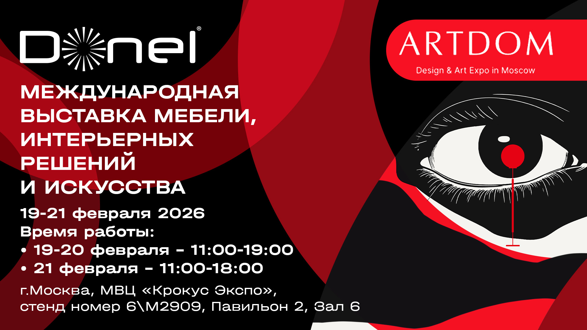 Бренд Donel приглашает Вас посетить Международную выставку мебели, интерьерных решений и искусства ARTDOM Sense Sensory, которая будет проходить с 19 по 21 февраля в Москве в МВЦ «Крокус Экспо».