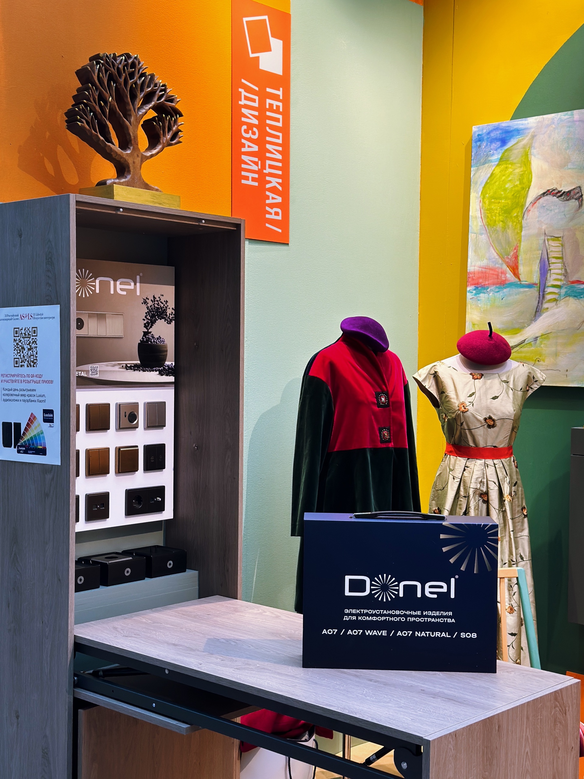 На стенде дизайнера Елены Теплицкой гости погрузились в мир света и гармонии, где были представлены наши ключевые новинки: флагманская серия R98 glass, трендовая палитра цветов R98 Trendy colors от Donel, а также изысканные и технологичные решения в освещении от Donolux.