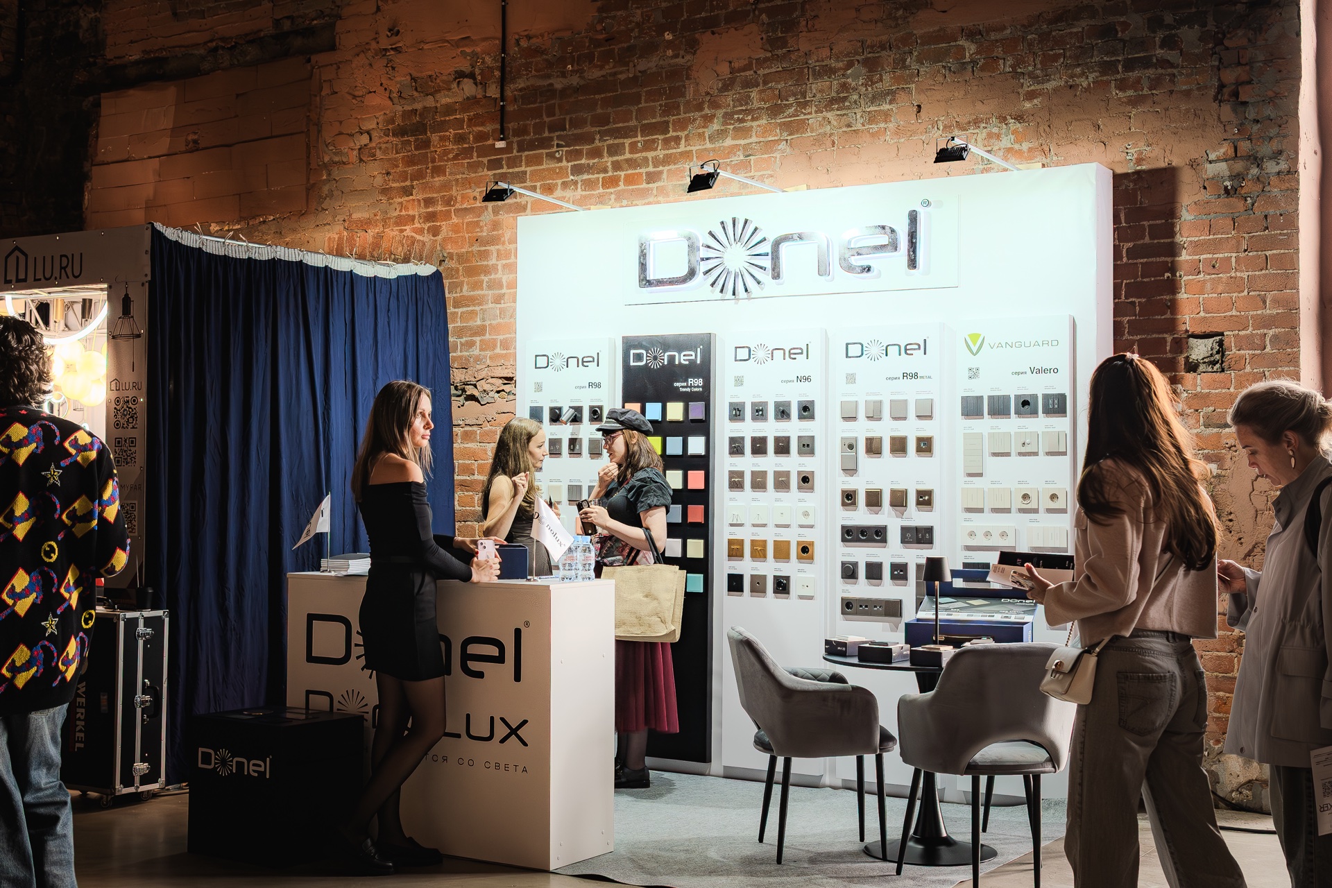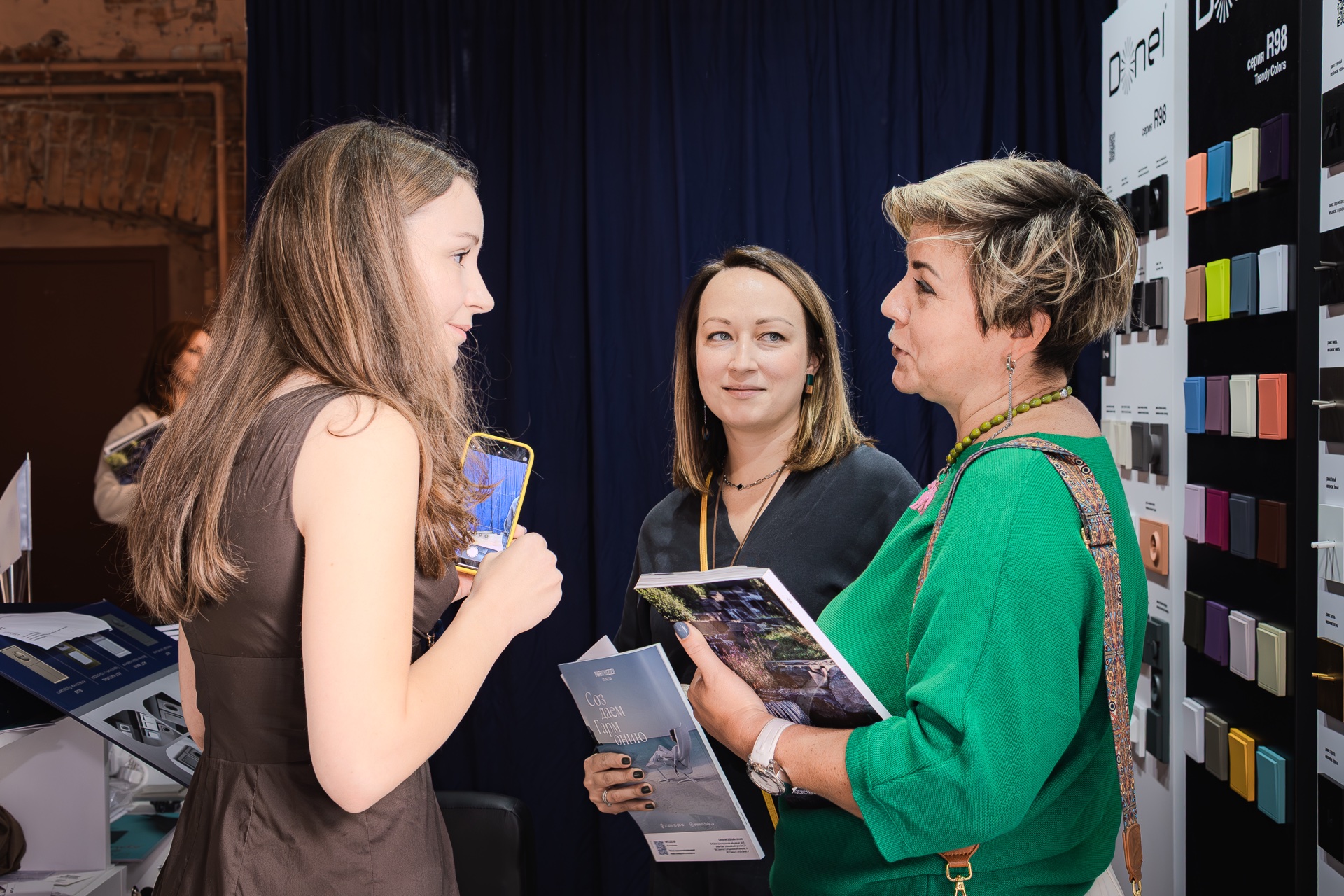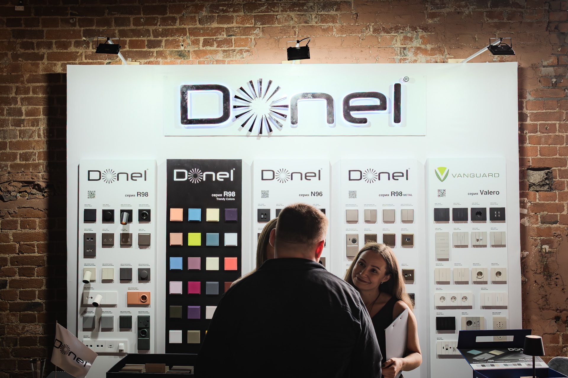 Стенд бренда Donel стал одним из самых заметных на выставке. Гости с большим интересом знакомились с нашей продукцией. Их внимание привлекли новые цвета и материалы в популярной серии электроустановочных изделий R98, а также инновационные серии A07 и S08. Отдельный интерес вызвала стильная новинка — линейка розеток и тумблерных выключателей N96.