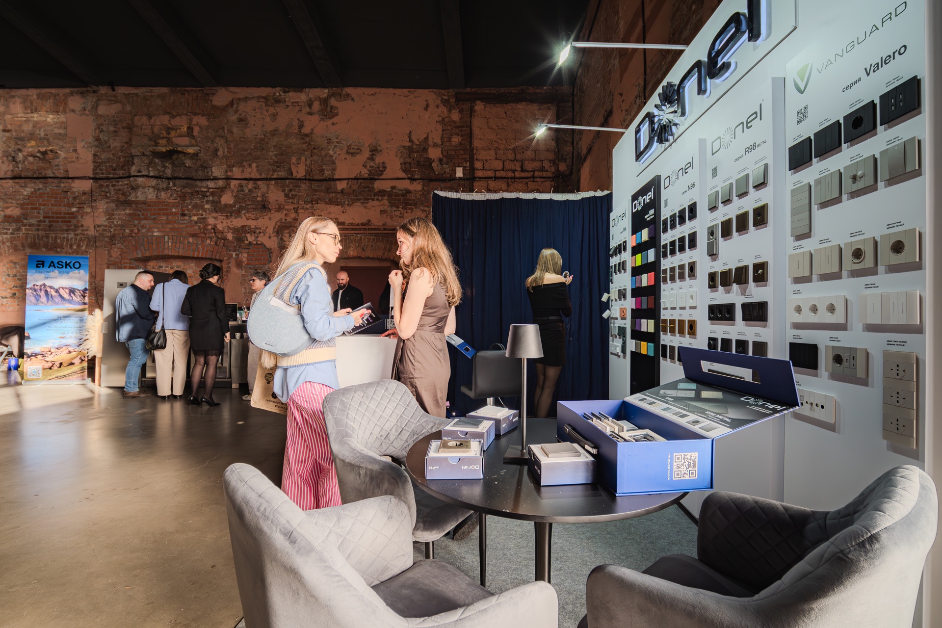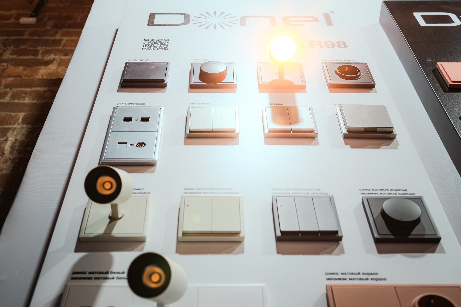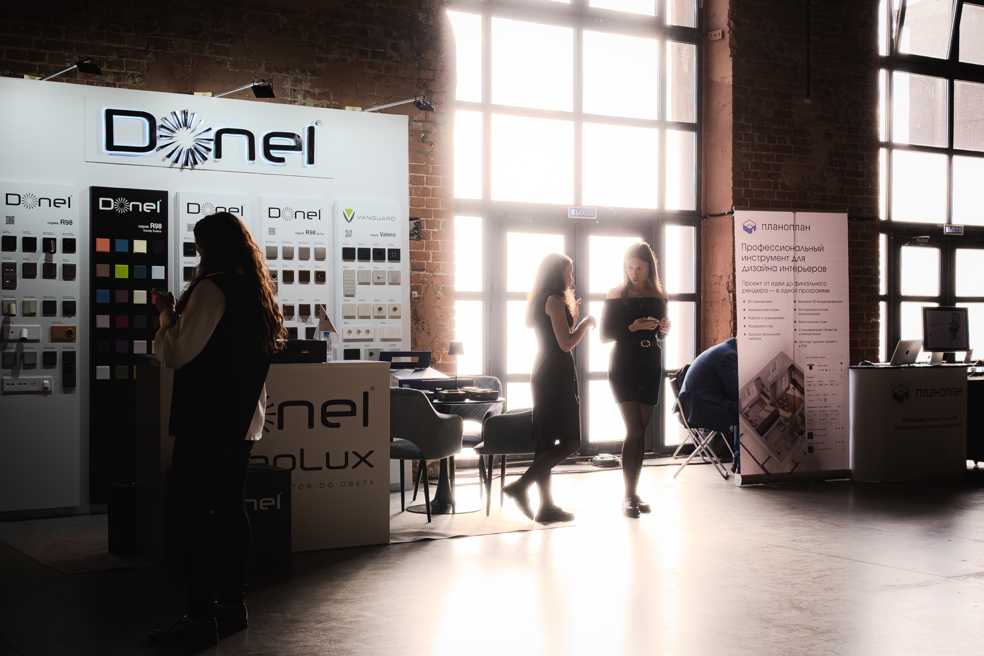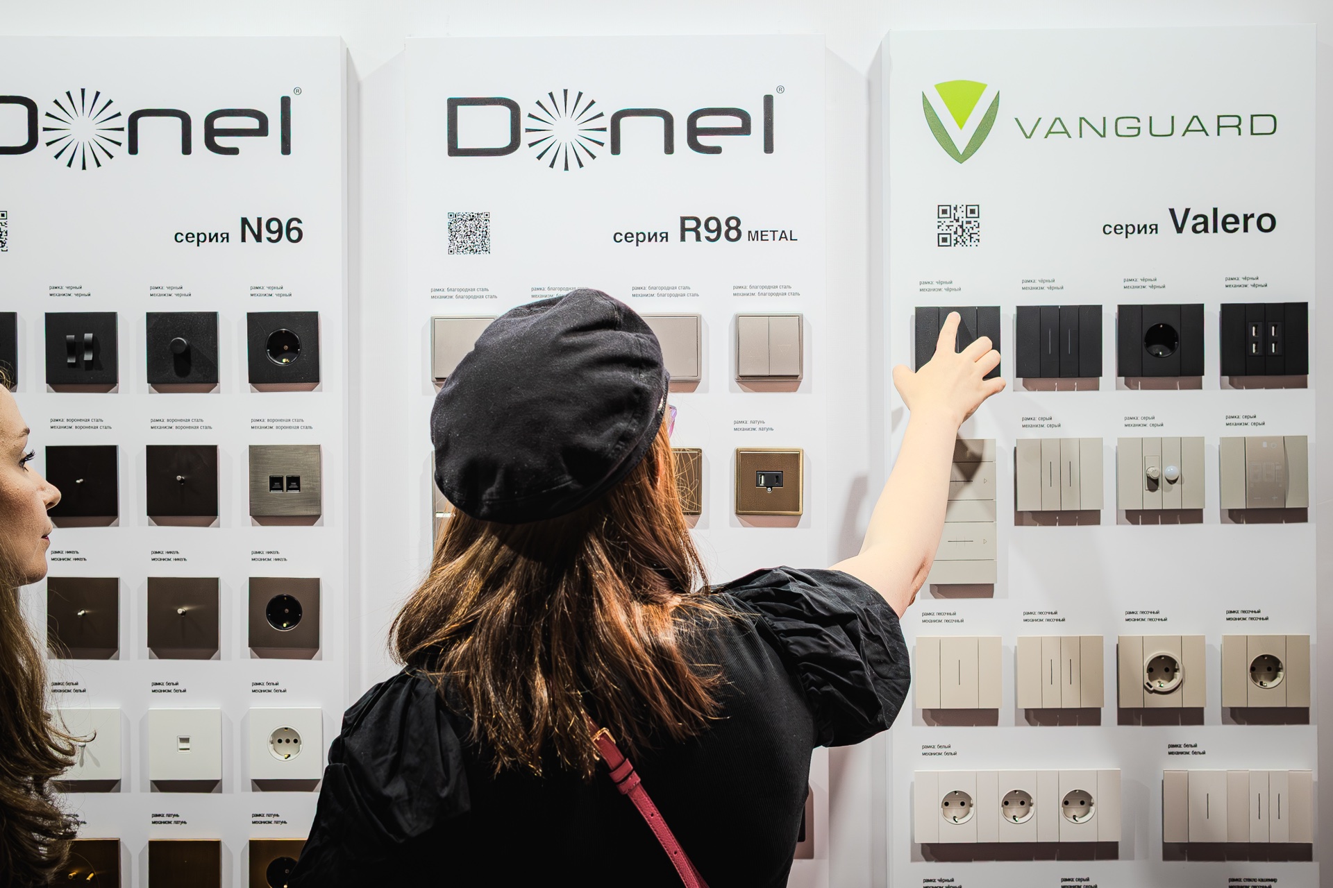 Стенд бренда Donel стал одним из самых заметных на выставке. Гости с большим интересом знакомились с нашей продукцией. Их внимание привлекли новые цвета и материалы в популярной серии электроустановочных изделий R98, а также инновационные серии A07 и S08. Отдельный интерес вызвала стильная новинка — линейка розеток и тумблерных выключателей N96.