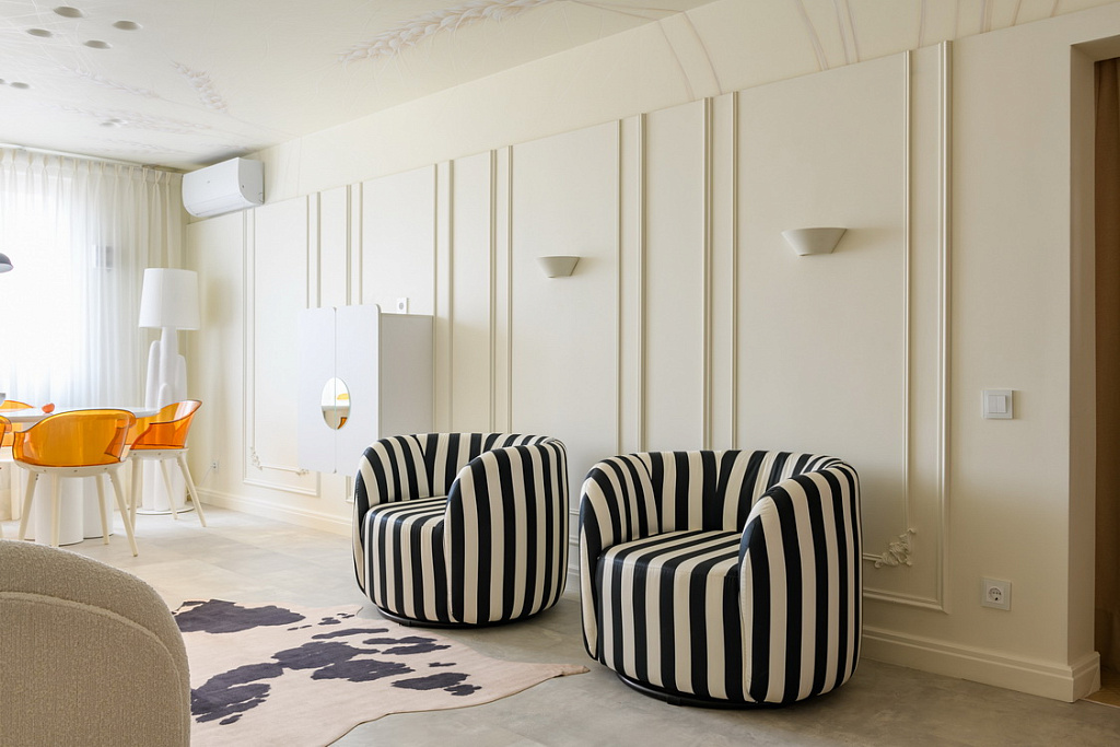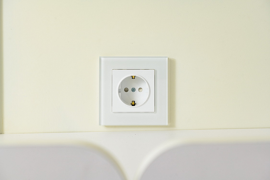 В проекте представлены белые розетки и выключатели серии A07 NATURAL со стеклянными рамками.