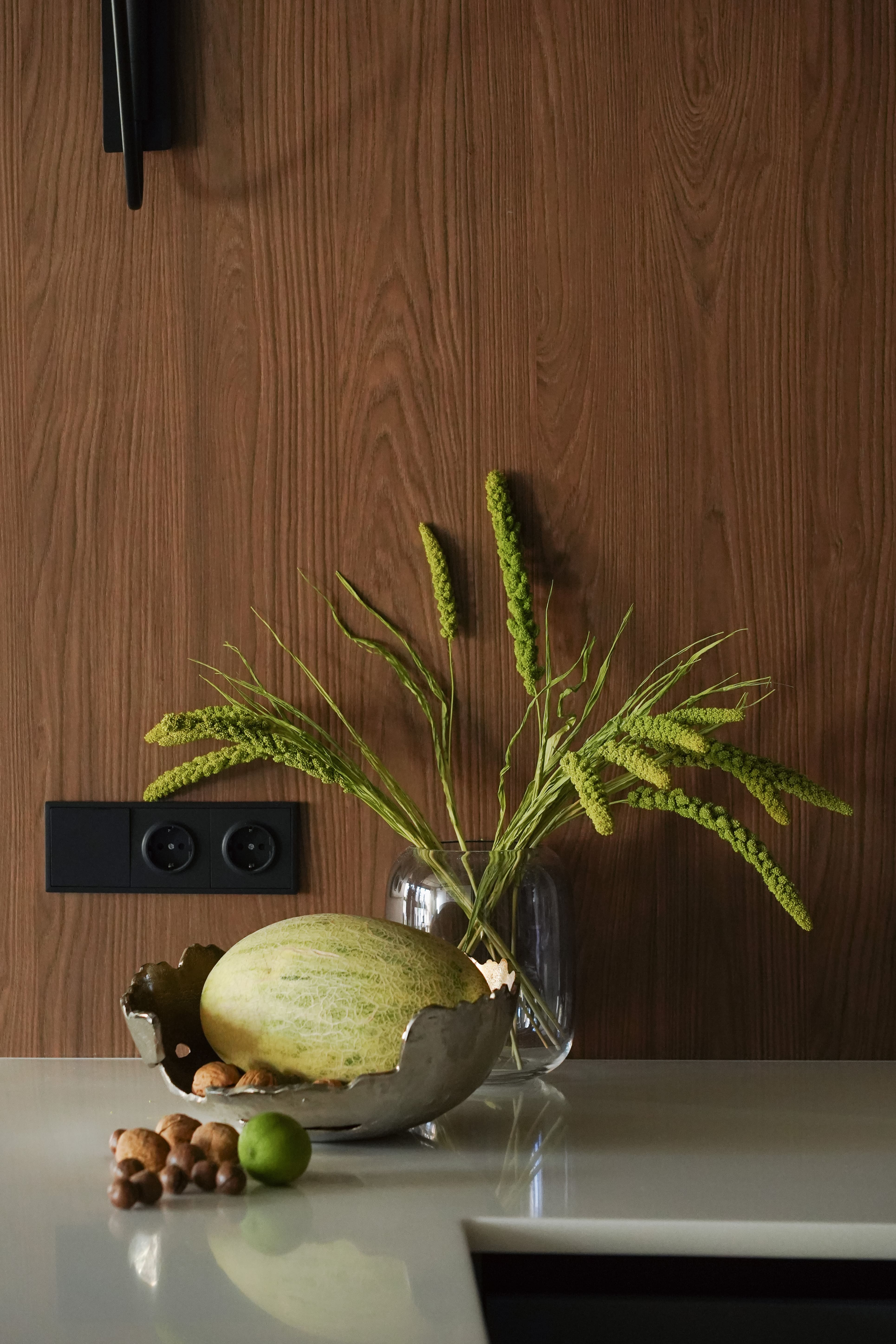 В проекте представлены розетки и выключатели R98 в цвете матовый карбон